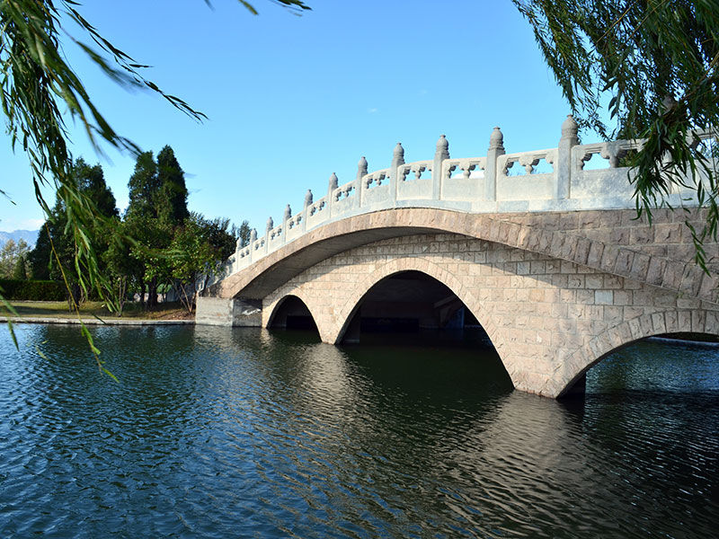 陵园内亭台楼榭遥相呼应,苍松翠柏生机盎然,石刻雕塑栩栩如生,大有画龙点睛之神妙。中心广场视野开阔、恢弘大气,日月湖垂柳摇曳、风景秀美,湖水波光潋滟、风光旖旎,尽显日月精华浸润下的恬静与超然。